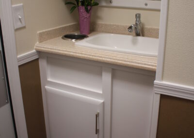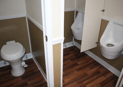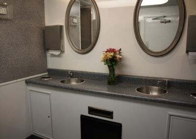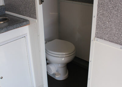 Our 22 foot comfort station/restroom trailer is ideal for your outdoor weddings or upscale special events. It can handle up to 400 people for a four hour event.